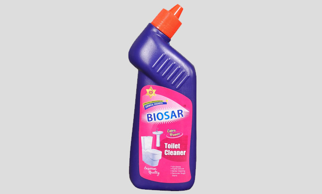 BIOSAR toilet cleaner kills germs, disinfects, deodorises, removes stains and tackles salt deposits in a single go.